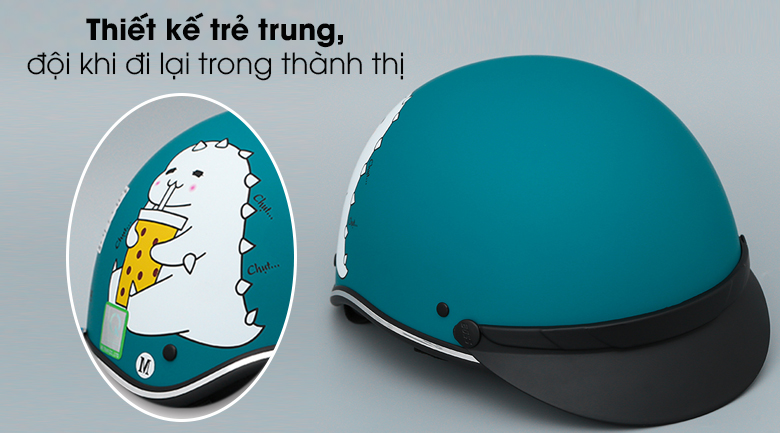 Loại mũ nửa đầu hay 1/2 gọn gàng, size M đội vừa với cỡ đầu của người trưởng thành có chu vi đầu 58 - 59 cm. Đáp ứng nhu cầu di chuyển hằng ngày bằng xe máy, không thích hợp dùng khi phượt hay di chuyển đường dài.