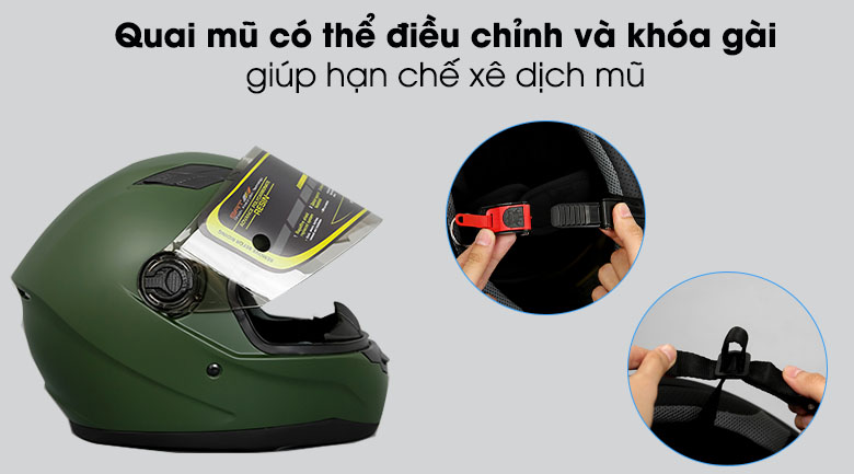 - Dây quai điều chỉnh phù hợp với cỡ đầu, không quá rộng hoặc chật để tránh gây khó khăn khi tham gia giao thông.