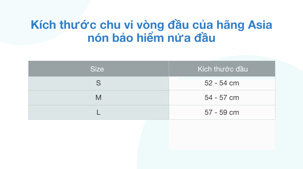 - Nón size L, phù hợp cho người có chu vi vòng đầu từ 57 - 59 cm, nam nữ đều có thể sử dụng được.