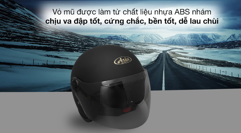 Mũ 3/4 size L Asia MT-124K đen có vỏ được làm từ nhựa ABS chống va đập tốt, trang bị kính chắn gió chống bụi, chống tia cực tím, mút xốp EPS dày 3 cm bảo vệ đầu một cách êm ái với lớp vải kháng khuẩn chống ẩm, không gây kích ứng da đầu, đảm bảo an toàn, là người bạn đồng hành trên mọi nẻo đường.