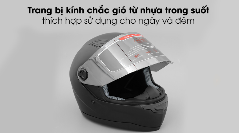 Mũ bảo hiểm có kính dùng để chắn bụi và gió, giúp bảo vệ mắt khi đi đường xa hay đi với tốc độ nhanh. Phần kính có thể điều chỉnh lên xuống tiện lợi.