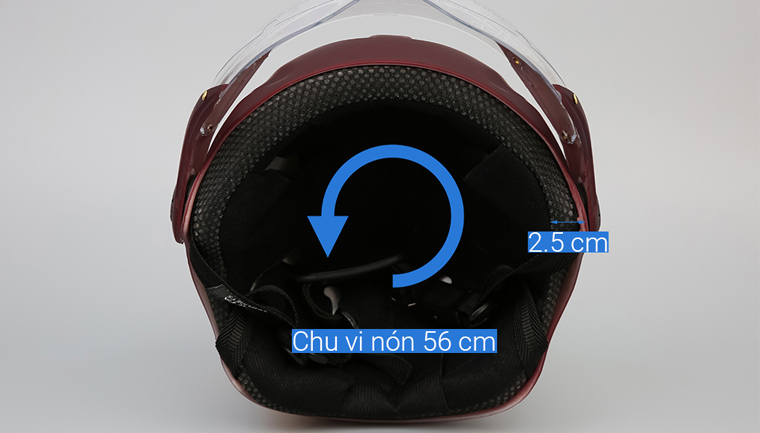 Bên trong mũ bảo hiểm làm bằng xốp dày 2.5 cm