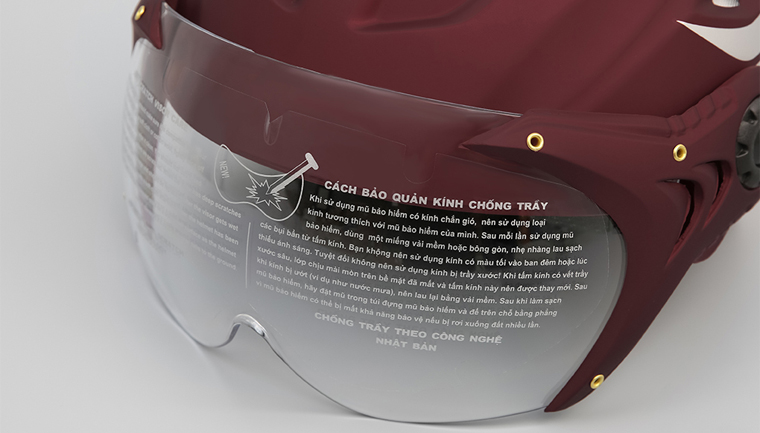 Mũ bảo hiểm nửa đầu có kính Chita CT14N(K) với màu đỏ đô sang trọng, đồng hành cùng bạn trên mọi nẻo đường
