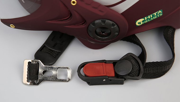 Khóa cài quai chắc chắn, giúp cố định nón ở yên vị trí không bị văng ra ngoài, bảo vệ phần đầu tối đa