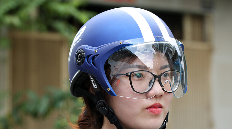 Với tấm kính chắn bụi được thiết kế bên trên nón bảo hiểm, thuận tiện quan sát đường đi và bảo vệ mắt của bạn khỏi những bụi bẩn khi tham gia giao thông, kính có thể điều chỉnh lên xuống, thuận tiện khi sử dụng, chắn bụi khi để xuống và tăng tính thẩm mỹ khi kéo lên trên.