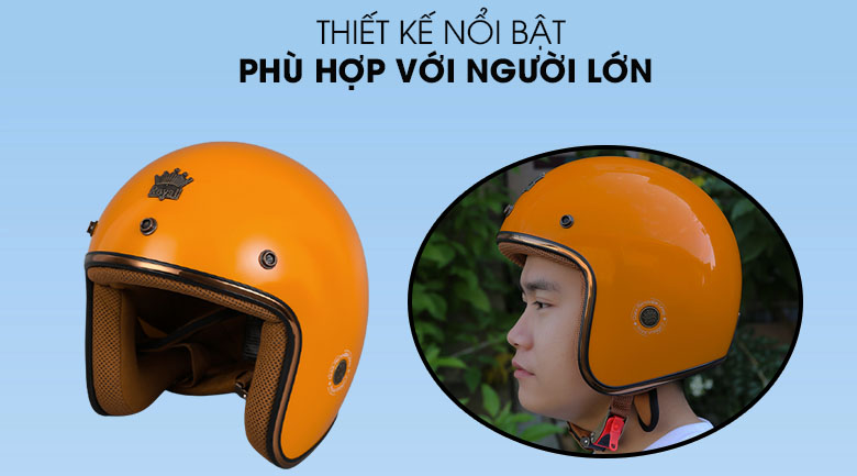 Thiết kế bao trùm vùng đầu tăng độ an toàn khi tham gia giao thông, có chu vi vòng đầu 57 - 59 cm, nam hay nữ đều sử dụng được. Mũ phù hợp cho người trưởng thành sử dụng đi gần, đi phượt, đường trường,...