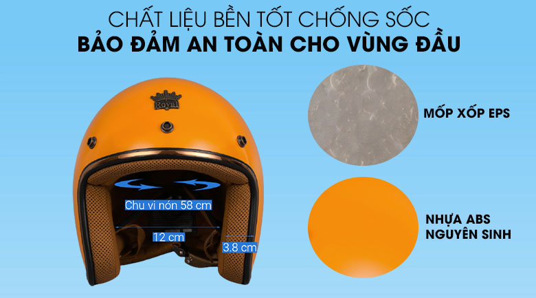 Sử dụng chất liệu nhựa ABS nguyên sinh làm vỏ mũ giúp tăng khả năng chịu lực, va đập, chống ăn mòn. Phần ruột bằng mốp xốp EPS dày 3.8 cm cố định vùng đầu, cho hiệu quả chống sốc, bảo vệ vùng đầu hiệu quả trong mọi hoàn cảnh.