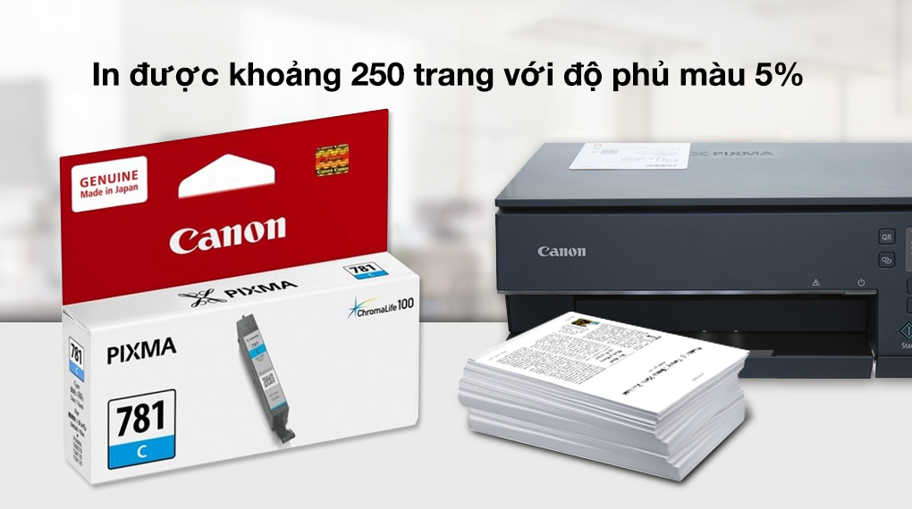 Hộp mực in phun màu Canon CLI-781 C/Xanh đảm bảo chất lượng bản in cao nhờ sản phẩm chính hãng uy tín, dễ dàng lắp đặt, tương thích đa dạng máy in Canon, có thể in được đến khoảng 250 trang in nét đẹp.