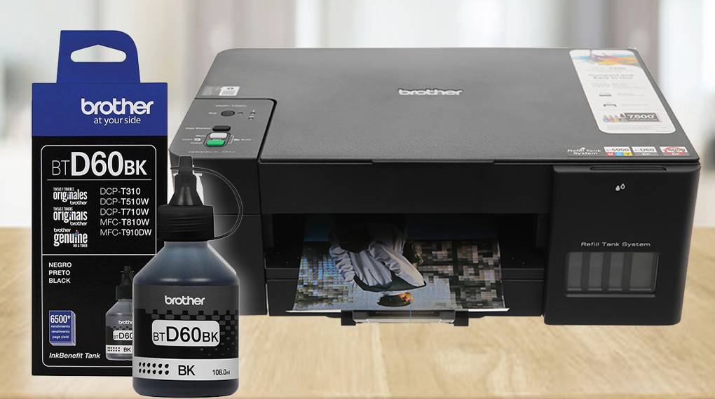 Bình mực in phun Brother có thể in màu lên đến 7500 trang A4 với độ phủ màu 5%. Một hiệu suất in khá ấn tượng với một bình mực in nhỏ như BTD60BK.