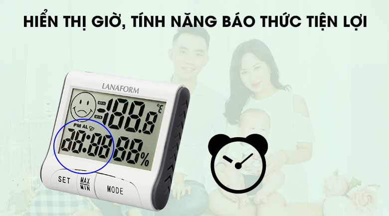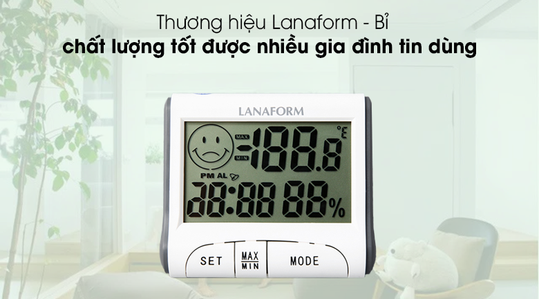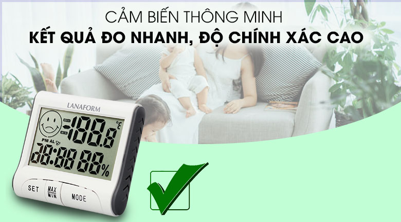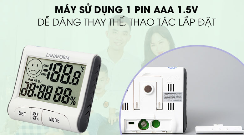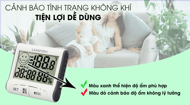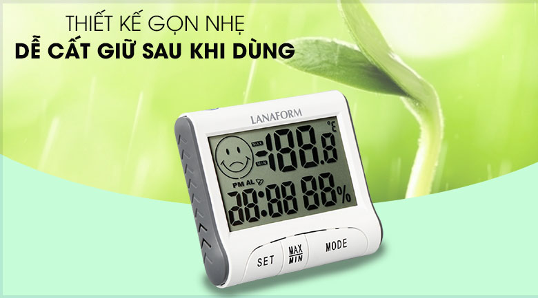 Nhiệt ẩm kế điện tử Lanaform LA120701 nhỏ gọn, phù hợp cho mọi đối tượng, giúp đánh giá được môi trường không khí về độ ẩm và nhiệt độ đem lại giá trị tiện lợi chăm sóc sức khỏe cho cả gia đình.