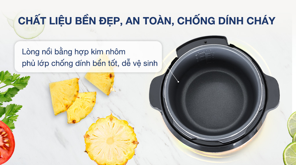 - Thiết kế chống tràn: không bay hơi và không tràn ra ngoài khi nấu cháo, súp và hầm thức ăn, giữ cho không gian xung quanh luôn sạch sẽ.