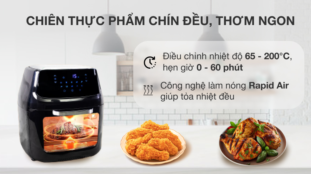 - Công nghệ làm nóng Rapid Air làm chín đều thực phẩm.