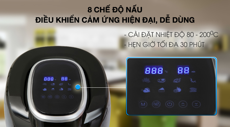 Chế độ hẹn giờ từ 0 - 30 phút điều chỉnh theo món nấu, người dùng chủ động hơn thời gian dùng nồi chiên và rảnh tay cho những công việc khác.