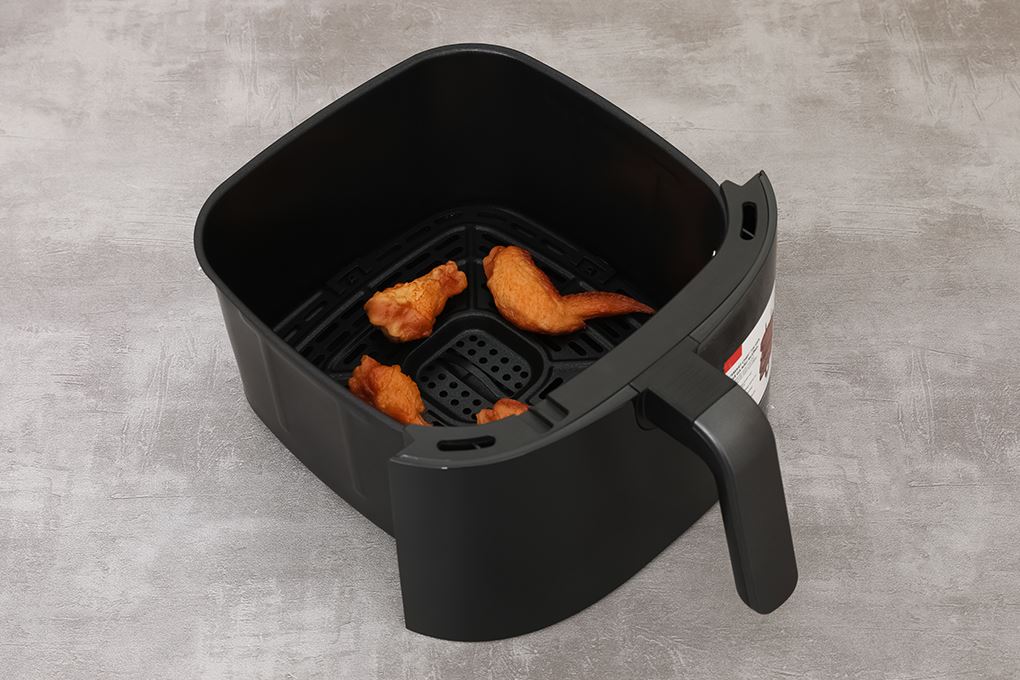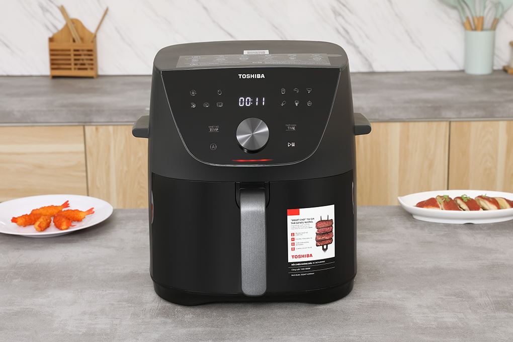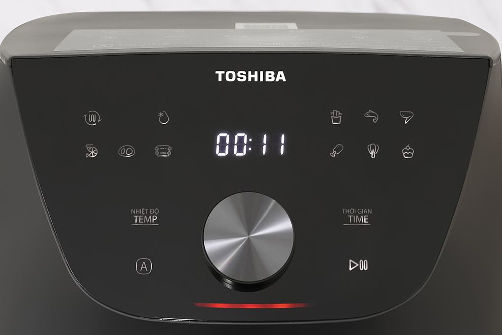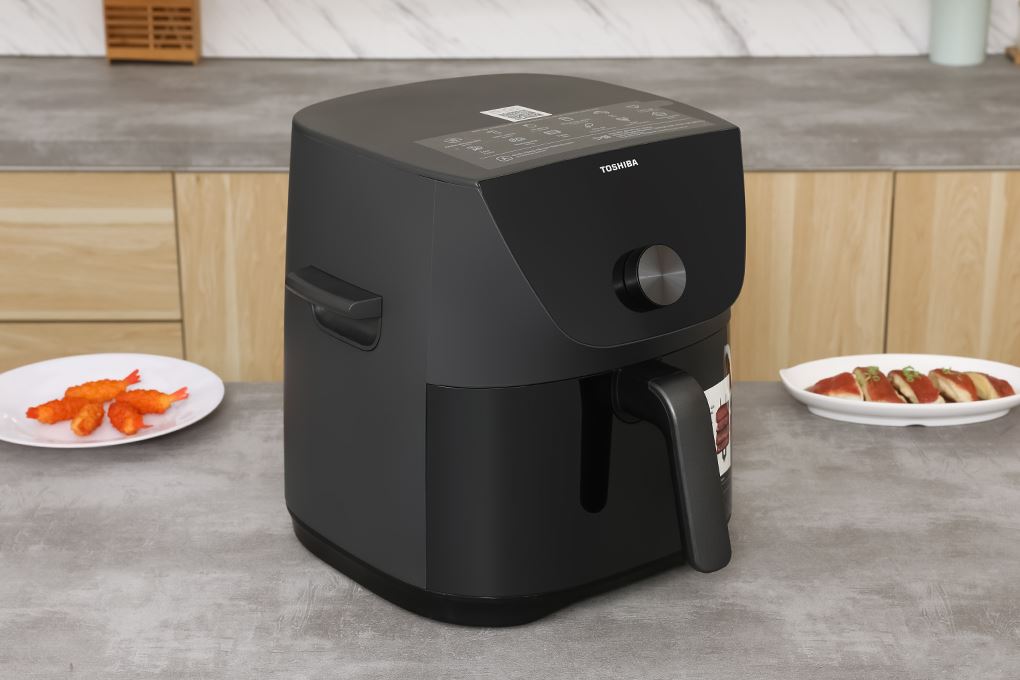 Với dung tích sử dụng 7.4 lít, nồi chiên không dầu Toshiba phù hợp để chế biến gà nguyên con hoặc nhiều phần thực phẩm trong một lần nấu. Không gian khoang lò rộng giúp hạn chế việc phải chia nhỏ nguyên liệu thành nhiều mẻ, tiết kiệm thời gian đáng kể.