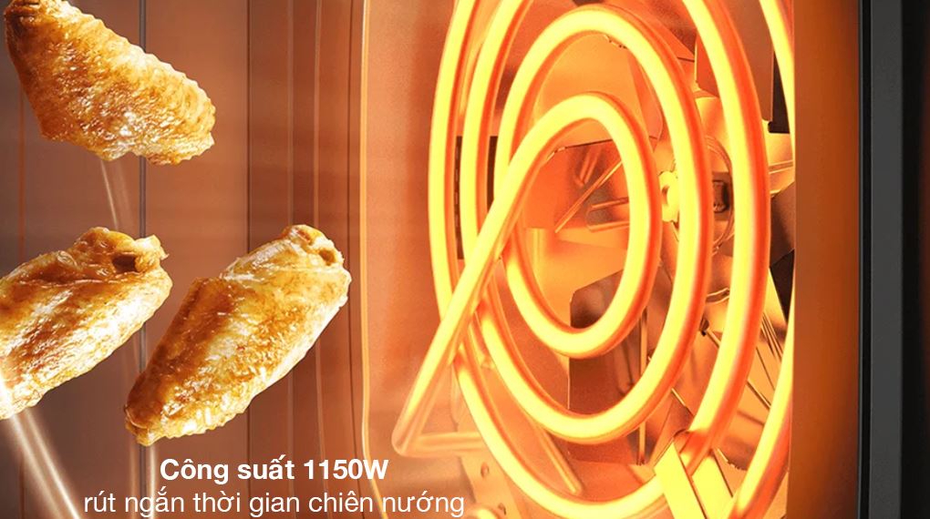Công suất 1550W giúp nồi làm nóng nhanh, rút ngắn thời gian chế biến và giữ nhiệt ổn định trong suốt quá trình chiên nướng.