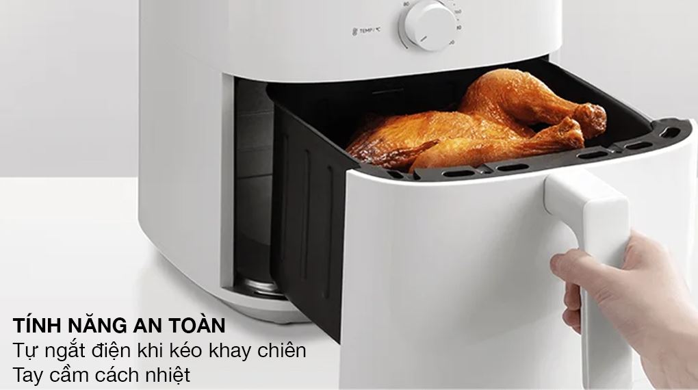 Xiaomi Air Fryer Essential 6 lít được trang bị quạt đối lưu giúp luồng khí nóng lưu thông đều trong khoang nồi, hỗ trợ thực phẩm chín đồng đều hơn. Tính năng tự ngắt khi quá nhiệt và tự ngắt điện khi kéo khay chiên góp phần tăng độ an toàn trong quá trình sử dụng.