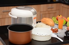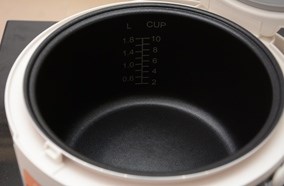 Nồi có dung tích 1.8L, có thể nấu 1.5kg gạo là lựa chọn rất hợp lý cho những gia đình 4-6 người ăn.Lòng nồi hợp kim nhôm dày chống dính