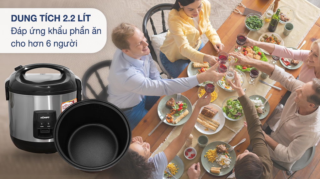 Nồi cơm nắp gài Hommy 2.2 lít NCG2201 của thương hiệu Hommy - Việt Nam, sở hữu mẫu mã đẹp mắt, dung tích lớn 2.2 lít, công suất 700W, bảng điều khiển dễ sử dụng và khả năng nấu cơm nhanh chóng, là lựa chọn hoàn hảo cho gia đình Việt.