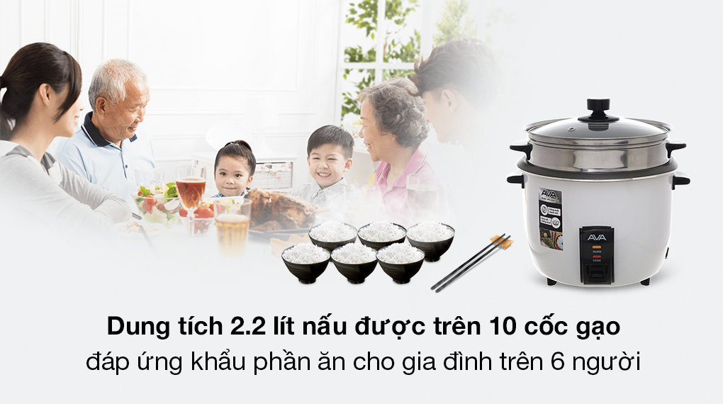 Nồi cơm nắp rời AVA 2.2 lít WH-50G07A thiết kế đơn giản, dễ sử dụng, nấu cơm chín nhanh, phục vụ tốt khẩu phần ăn trên 6 người, hứa hẹn mang lại trải nghiệm tích cực cho gia đình bạn.