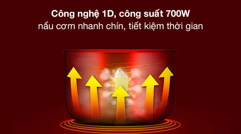 • Công suất 700W cùng công nghệ nấu 1D cơm chín nhanh, tiết kiệm điện.