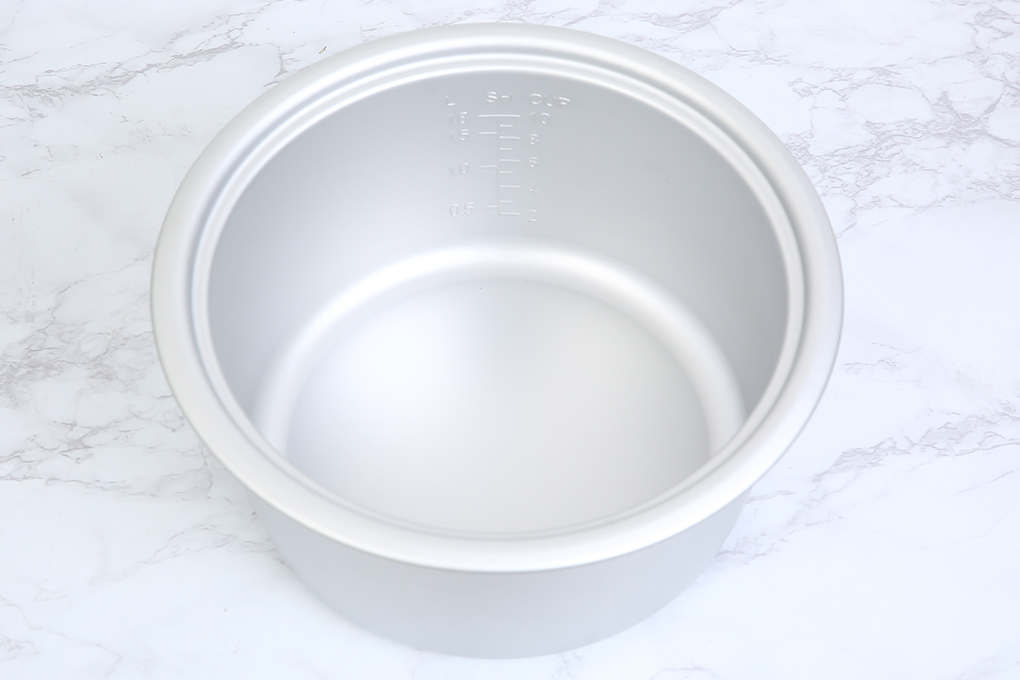 Lòng nồi cơm điện bằng hợp kim nhôm anod, truyền nhiệt nhanh, cứng, bền, không trầy xước, móp méo, vỡ khi rơi