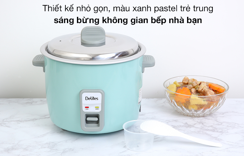 Nồi cơm điện Delites thiết kế nhỏ gọn, màu xanh trẻ trung, sáng bừng không gian bếp nhà bạn