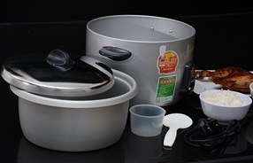 ![]() Mâm nhiệt lớn nấu cơm nhanh, cơ động, tiện dụng Mâm nhiệt công suất lớn, phẳng, tiếp xúc đáy nồi 100% cho thời gian nấu cơm rút ngắn đáng kể. | ![]() Nắp rời hợp kim Inox sáng bóng, tiện lợi, dễ lau chùi Nắp nồi làm từ hợp kim Inox sáng bóng, dễ lau chùi, giữ ấm được cơm khi đem nồi con ra đặt trên bàn ăn. | ![]() Tay cầm cách nhiệt chống nóng khi di chuyển nồi Tay cầm bằng nhựa cách nhiệt cao cấp, không bị nóng tay khi di chuyển nồi. |