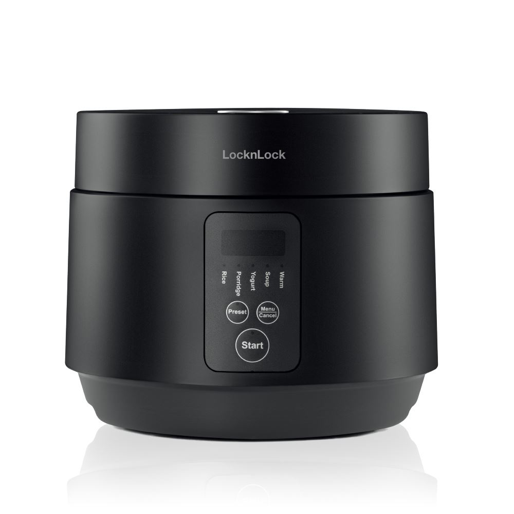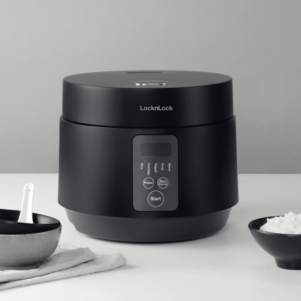 Không chỉ dừng lại ở chức năng nấu cơm cơ bản, nồi cơm điện Lock&Lock EJR346BLK còn mang đến thực đơn nấu đa dạng với 5 chế độ tiện lợi: giữ ấm, canh, sữa chua, cháo và cơm. Điều này giúp bạn dễ dàng chuẩn bị bữa ăn phong phú cho cả gia đình mà không cần quá nhiều thiết bị. Đặc biệt, công nghệ tỏa nhiệt 3D tiên tiến đảm bảo nhiệt lượng được phân bổ đều khắp nồi, giúp hạt cơm chín đều từ mọi phía, mềm dẻo và giữ trọn hương vị. Một điểm cộng lớn của chiếc nồi cơm điện tử này là chức năng hẹn giờ thông minh lên đến 24 giờ. Bạn chỉ cần cài đặt thời gian nấu mong muốn, nồi sẽ tự động vận hành, giúp bạn chủ động hơn trong việc chuẩn bị bữa ăn, dù bận rộn đến đâu.