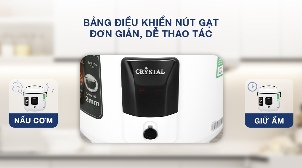 Nồi cơm điện nắp gài Crystal 1.8 lít BXB-50C sử dụng công nghệ 2D cho cơm chín đều, ngon hơn cùng lòng nồi dạng niêu dày dặn, giữ ấm hiệu quả và dung tích lớn đáp ứng tốt khẩu phần ăn gia đình 4 - 6 thành viên.