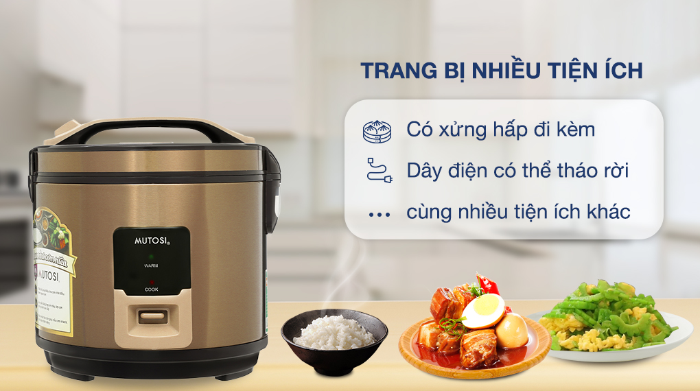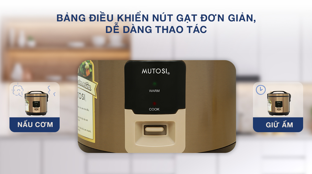 - Mẫu nồi cơm điện Mutosi này có thể tùy chỉnh 2 chế độ: nấu cơm và giữ ấm.