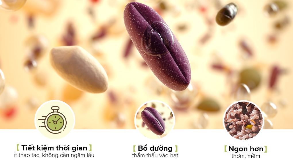 Người dùng có thể tùy chỉnh thời gian ngâm phù hợp, khi kết thúc thời gian này, nồi sẽ chuyển sang chế độ nấu đã cài đặt. Nhờ vậy người dùng chỉ cần thao tác 1 lần bỏ hạt vào nồi và chờ đợi thành phẩm, tiết kiệm thời gian và công sức.