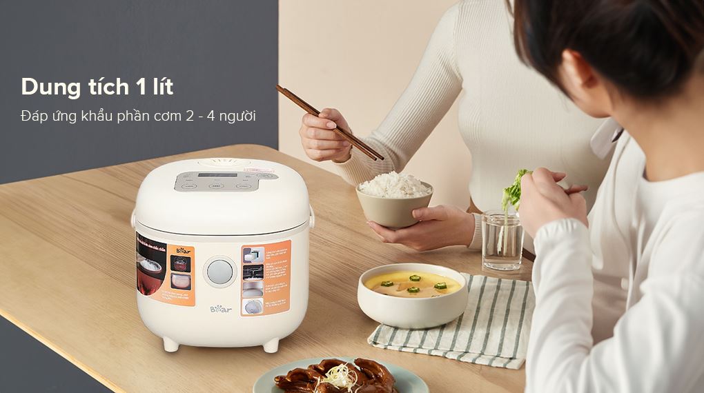 - Nồi có dung tích 1 lít, phục vụ được khẩu phần ăn cho gia đình có từ 2 - 4 thành viên.