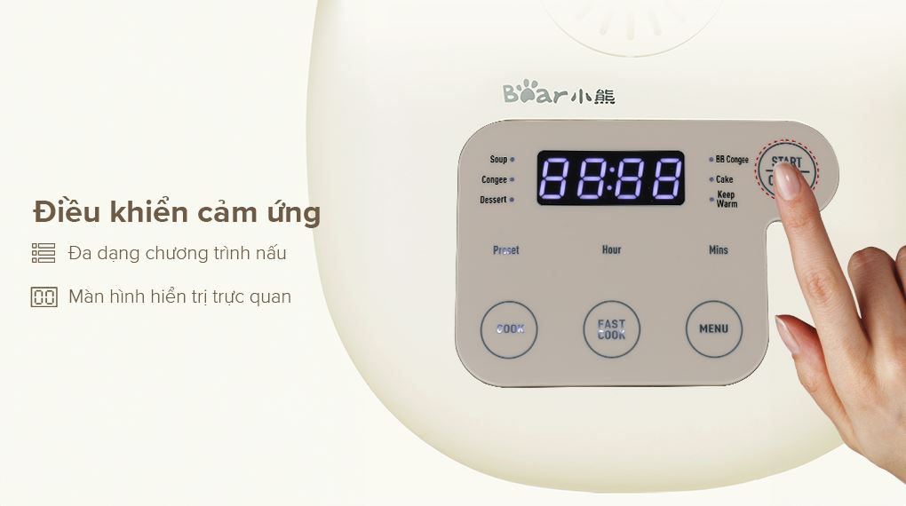 - Nồi cơm điện Bear với bảng điều khiển cảm ứng đơn giản, có thêm màn hình hiển thị để tiện theo dõi.