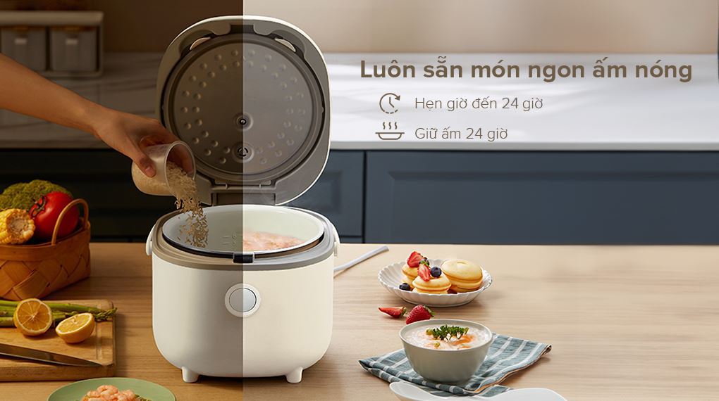 - Nồi có khả năng giữ ấm đến 24 giờ và hẹn giờ lên đến 24 giờ giúp người dùng chủ động hơn trong việc nấu nướng.