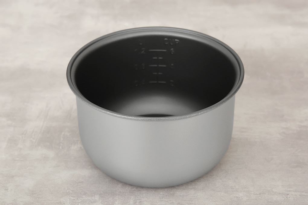 - Lòng nồi dày 1.3 mm được làm từ hợp kim nhôm, bên trong phủ lớp chống dính Teflon cao cấp nên cơm không bị bám dính và dễ vệ sinh sau mỗi lần sử dụng. Chất liệu này đảm bảo an toàn khi tiếp xúc với thực phẩm trong quá trình nấu ăn.