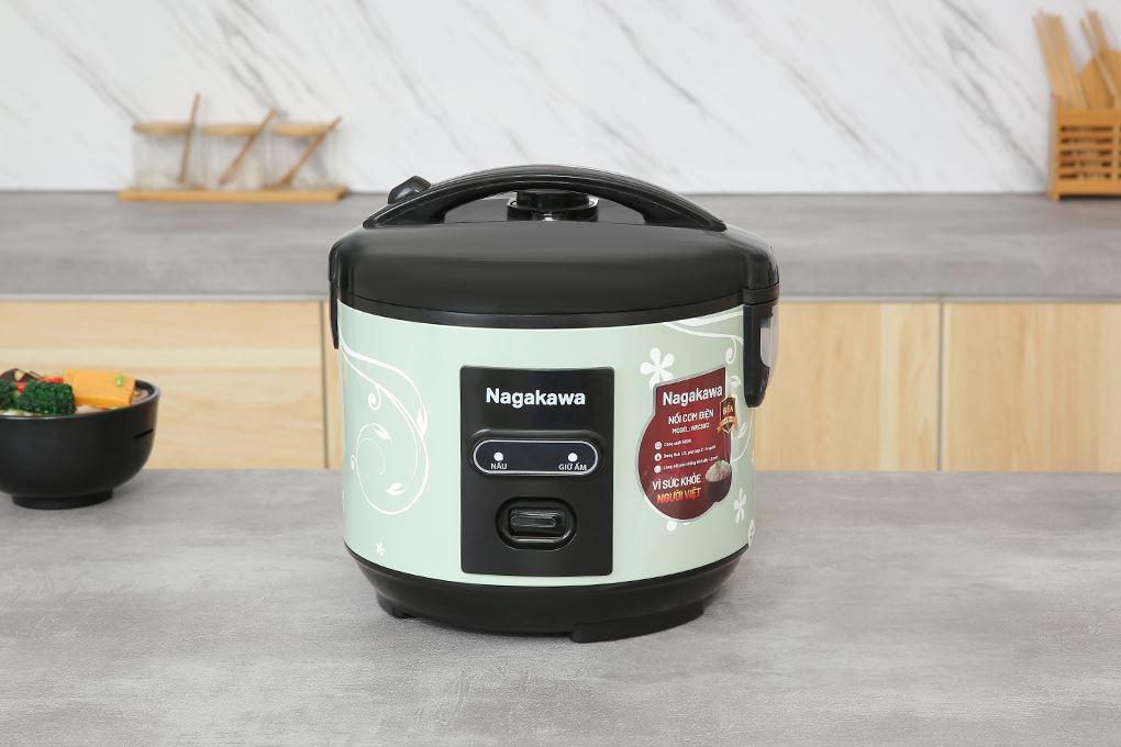 - Thân nồi cơm điện Nagakawa là sự kết hợp giữa 2 tông màu đen - xanh lá nhẹ nhàng nhưng không kém phần độc đáo, hiện đại, phù hợp với nhiều không gian bếp khác nhau.