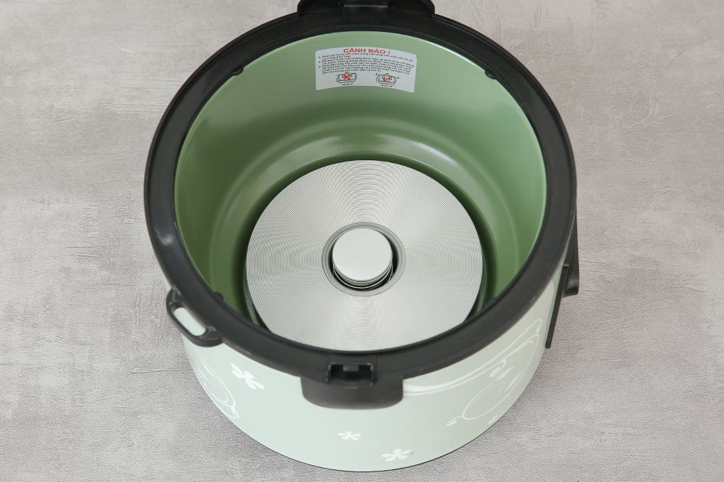 - Lòng nồi bằng hợp kim nhôm dày 1.2 mm phủ chống dính bền tốt giúp vệ sinh dễ dàng.