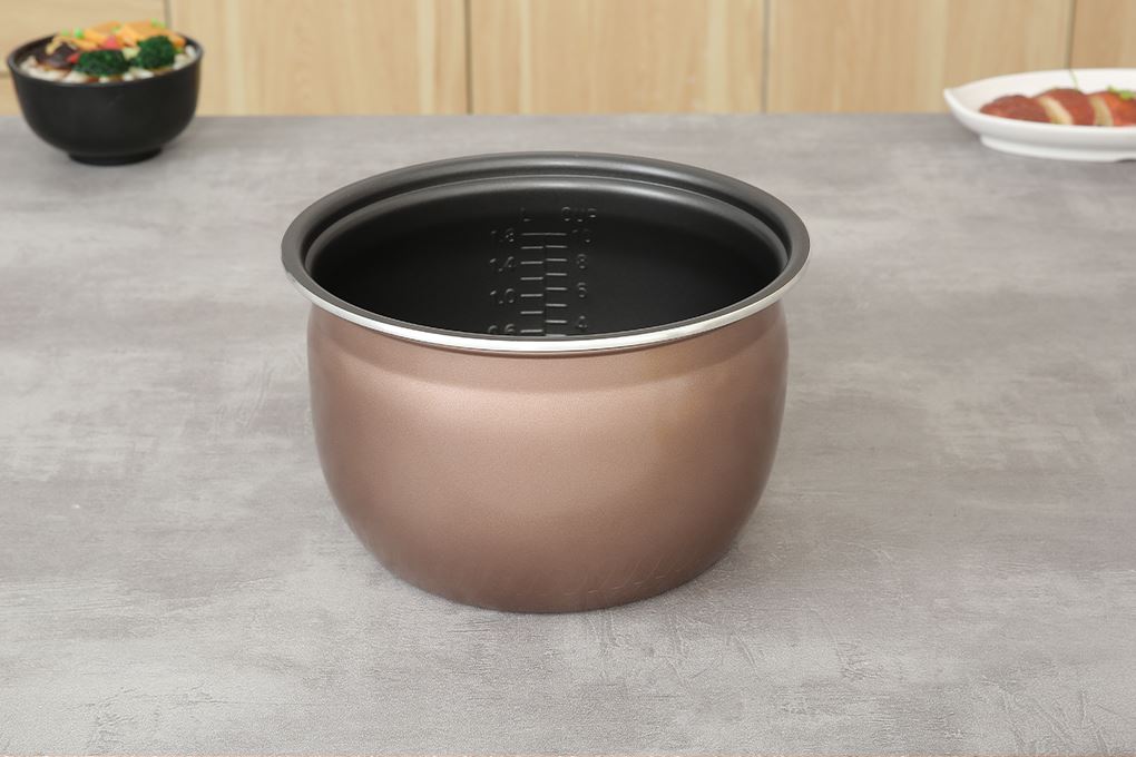 - Lòng nồi bằng hợp kim nhôm dày 1.6 mm phủ chống dính hạn chế cháy dính, dễ dàng vệ sinh.