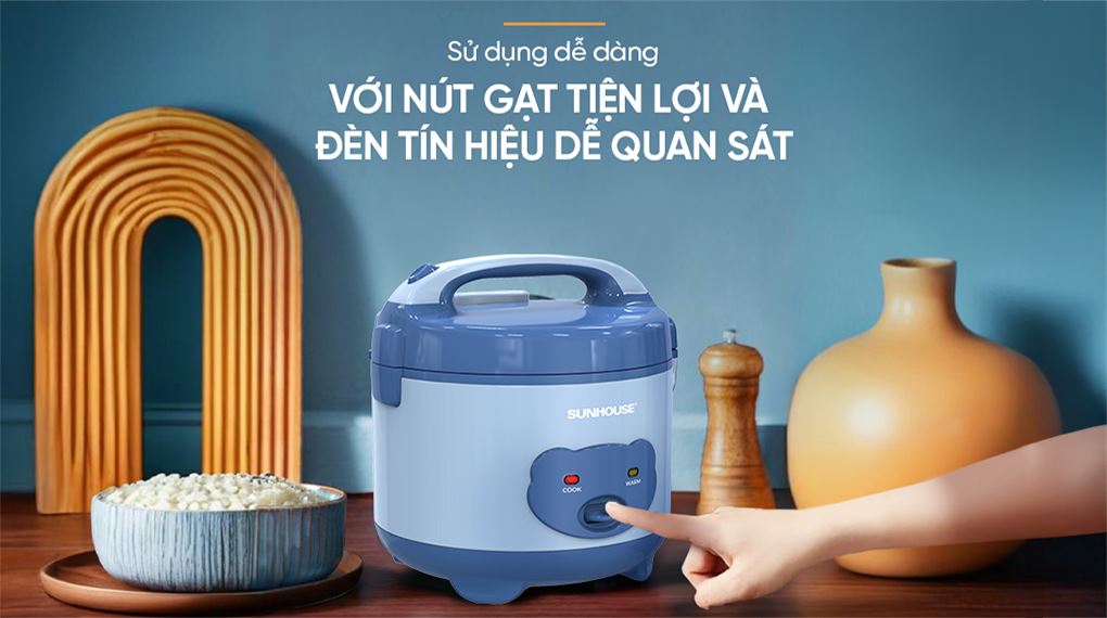 Nồi cơm nắp gài Sunhouse 1.2 lít SHD8214 là lựa chọn phù hợp cho gia đình nhỏ nhờ thiết kế gọn gàng, dễ dùng, nấu cơm ổn định và đáp ứng tốt nhu cầu sử dụng hằng ngày.