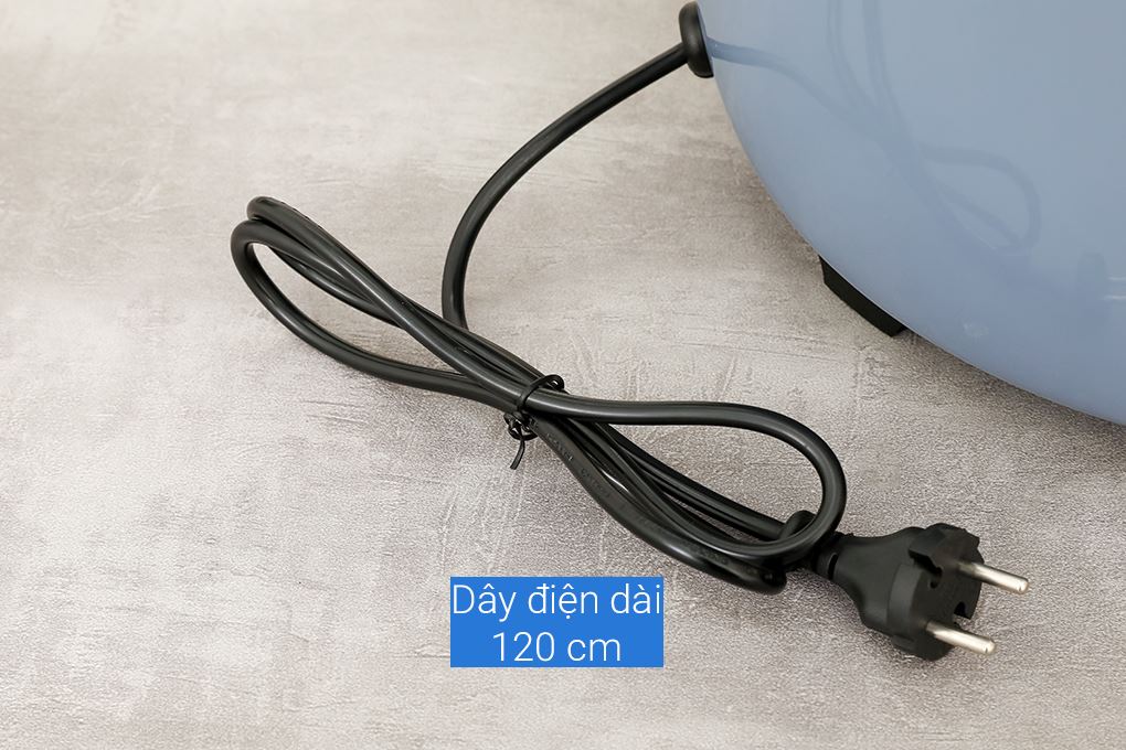 Thân nồi đi kèm tay cầm chắc, dễ di chuyển, cùng dây điện cố định dài 120 cm, phù hợp nhiều không gian bếp.