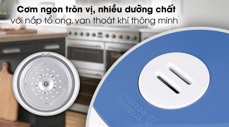 Nắp nồi 2 lớp, bên trong có dạng tổ ong giữ nhiệt tốt, cơm ngon tròn vị