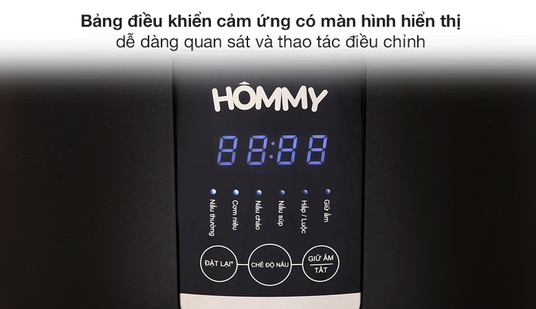 Nồi cơm điện tử Hommy 1.2 lít BMB-30A đa dạng chức năng nấu, thao tác đơn giản, tiện quan sát với bảng điều khiển cảm ứng có đèn LED hỗ trợ tối đa chị em nội trợ chuẩn bị những bữa cơm ngon cho gia đình.