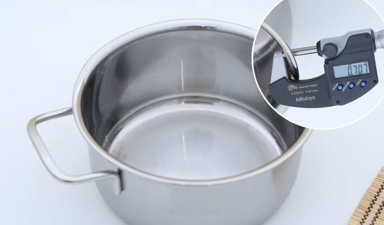 Bộ nồi được làm bằng inox 430 bền, ít bị oxi hóa, độ dày nồi 0.7 mm giúp đảm bảo an toàn thực phẩm khi sử dụng nồi.