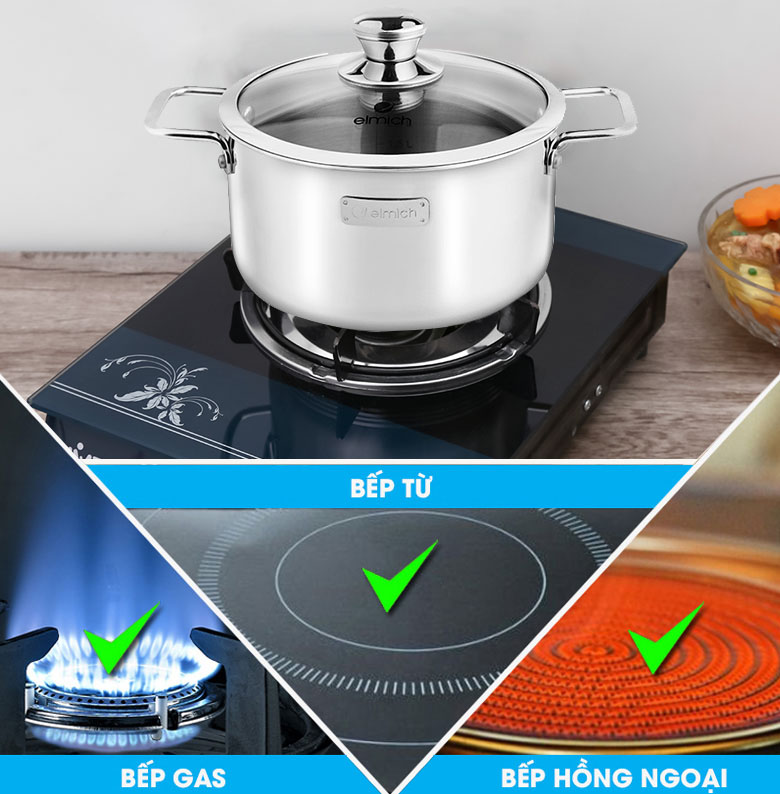 Bộ 4 cái nồi inox 3 đáy nắp kính Elmich Trimax Eco EL-8002 thương hiệu nổi tiếng Elmich, sản phẩm chất lượng cao, luôn đảm bảo an toàn khi sử dụng cho mọi gia đình.
