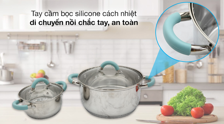 Bộ 2 nồi inox 3 đáy nắp kính Hommy CW-S051-4 thiết kế nhỏ gọn, chất liệu bền bỉ an toàn sức khỏe, đáp ứng tốt nhu cầu nấu nướng hằng ngày cho gia đình nhỏ.