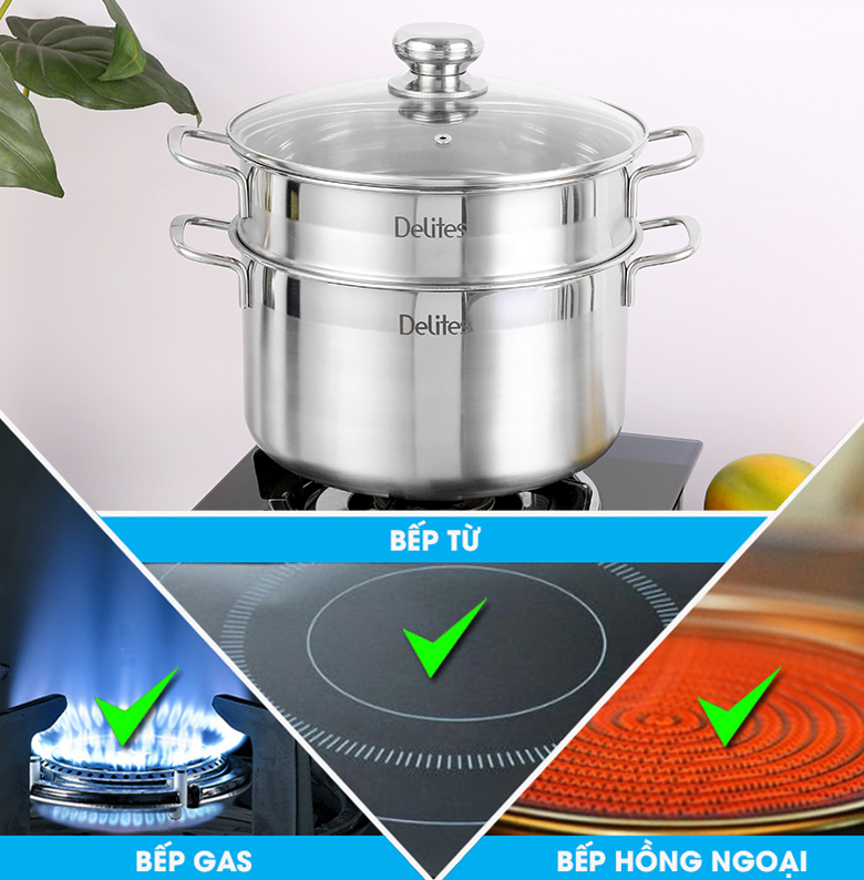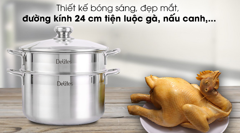 Bộ nồi inox 1 đáy 24 cm Delites XR001-24 sản xuất tại Việt Nam, mẫu đẹp, bền, trợ thủ đắc lực cho chị em nội trợ chuẩn bị bữa cơm ngon cho gia đình.