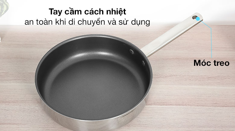 Chảo chống dính 26 cm có thể chiên được khoảng 4 cái cánh gà cùng lúc, độ dày lòng chảo 2.504 mm cho độ bền cao, an toàn khi sử dụng.