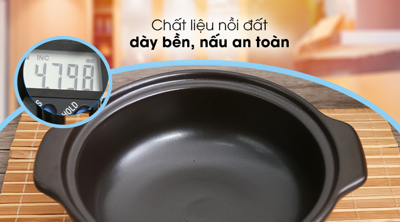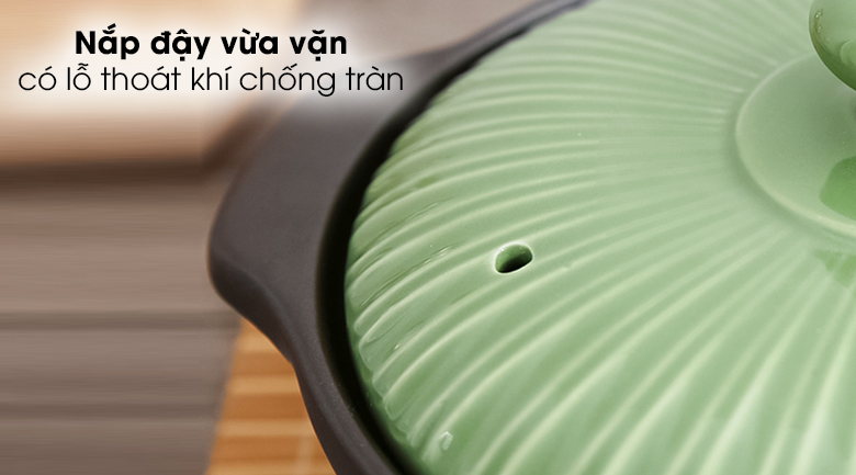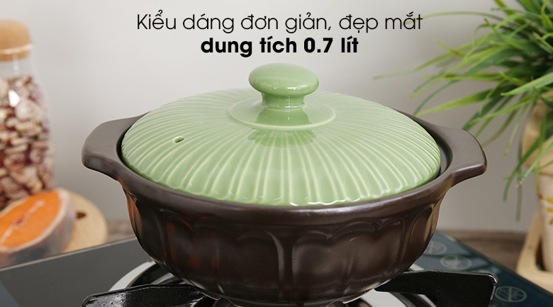 Nắp màu xanh lá cây tạo điểm nhấn cho bàn ăn thêm thanh lịch, trang nhã. Dung tích nhỏ 0.7 lít đáp ứng nhu cầu sử dụng của cá nhân, gia đình 1 - 2 thành viên, sử dụng để kho thịt, cá, nấu cháo, nấu cơm,...