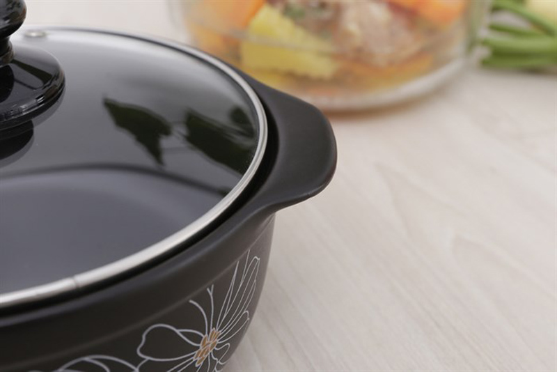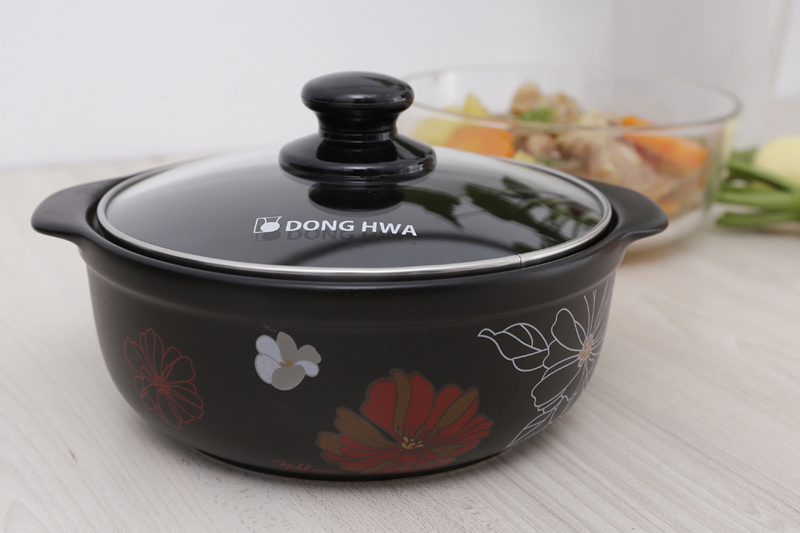 Nồi đất Dong Hwa Tucbeghi GF-703 sang trọng với thân nồi màu đen kèm hoa văn đỏ cam và trắng tinh tế, đẹp mắt. Sản phẩm làm đẹp không gian dùng, từ phòng bếp đến bàn ăn, bàn tiệc,…