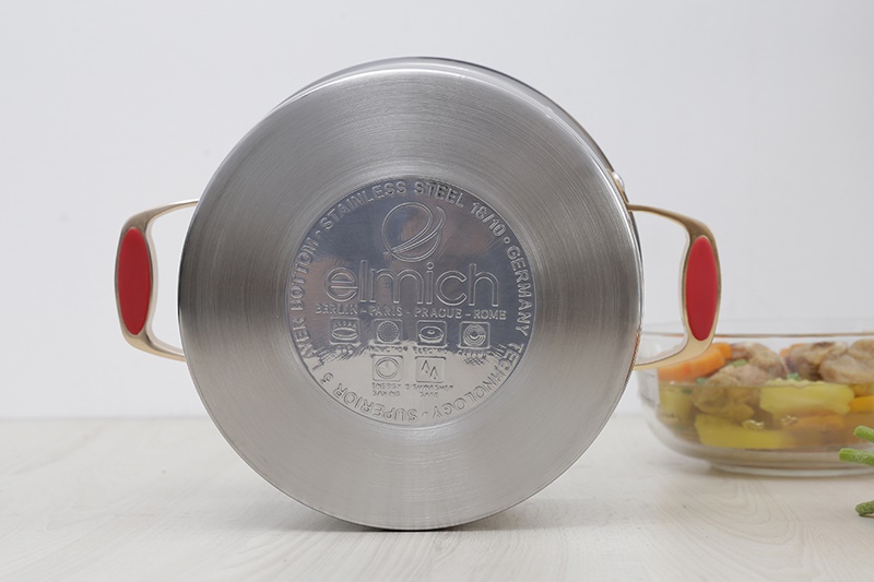 Nồi inox Elmich Red Velvet 20 cm sản xuất tại Cộng Hòa Séc, thiết kế đẹp mắt, kết hợp màu đỏ tạo điểm nhấn cho nồi thêm phần sang trọng.